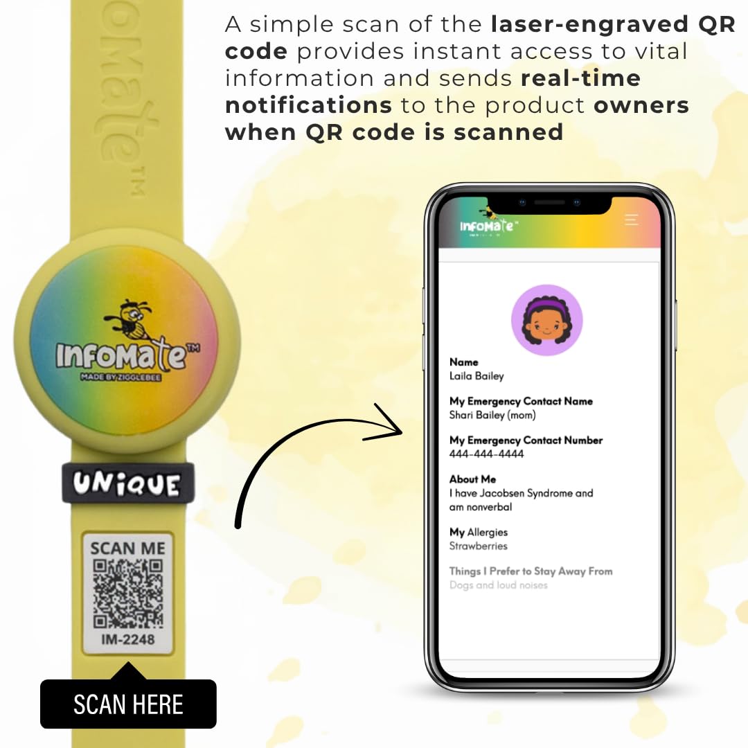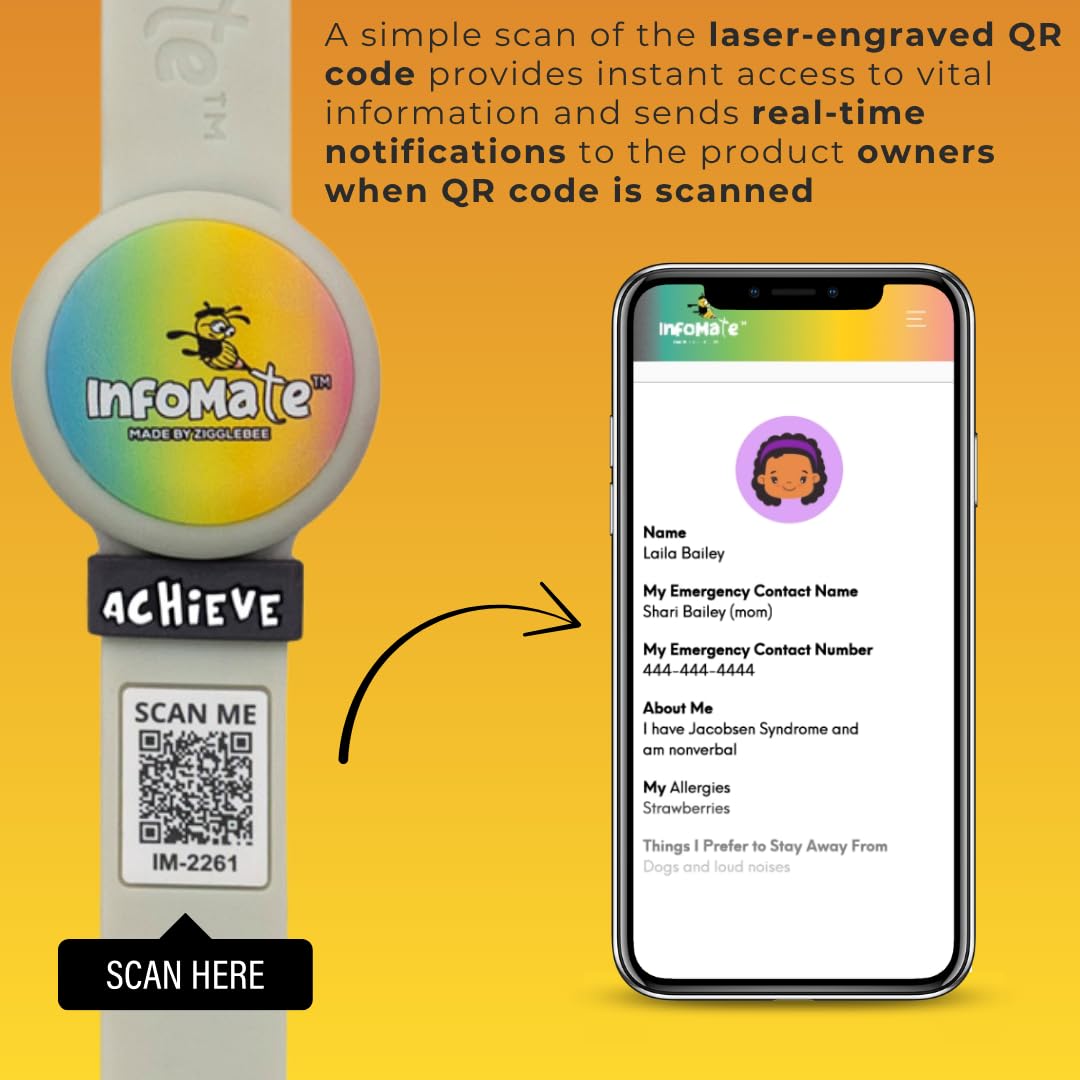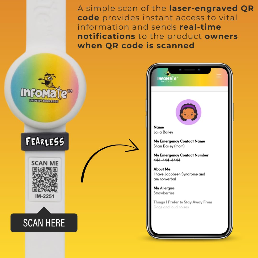 - Designed for Everyday Security – Ideal for children, seniors, and individuals who may need support. The InfoMate Wristband provides peace of mind with real-time access to vital information via a secure QR code.
